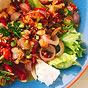 Saumon, nouilles udon, carotte, oignon rouge, chou blanc sauté, concombre, coriandre, sauce yakisoba, spicy mayo.