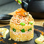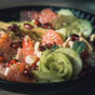 Chirashi tartare de saumon, riz vinaigré, jus de citron vert, huile d'olive, épices japonaises, ciboulette.