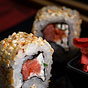 Crevette tempura, oignons frits, mangue, sauce spicy mayo, sauce teriyaki.