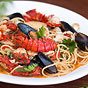 Crevette, nouilles udon, carotte, oignon rouge, chou blanc sauté, concombre, coriandre, sauce yakisoba, spicy mayo.
